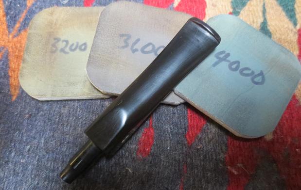 I polished the stem with micromesh sanding pads – wet sanding it with 1500-2400 grit pads and wiping it down after each pad with Obsidian Oil to give the next pad more bite when I sanded. I dry sanded it with 3200-12000 grit pads and again wiped it down with the oil after each pad. After the final pad I wiped it down with a damp cloth and set it aside while I finished the bowl.