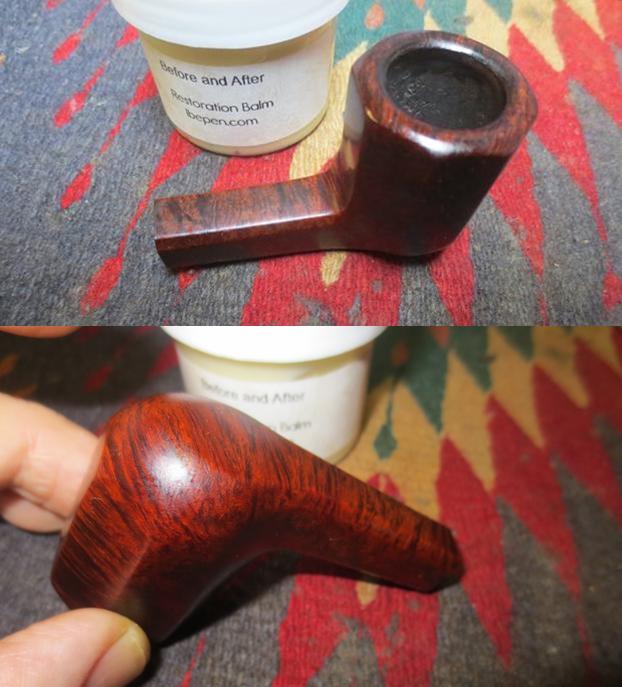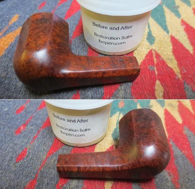 I am continuing to test out Mark Hoover’s new product that he calls Before & After Restoration Balm. I have used it on rusticated, sandblast and smooth briar bowls. Mark is the creator of the Before & After Pipe Stem Deoxidizer and Polishes that I have written about in earlier blogs and reviewed. I am including Mark’s description of the product once more so that if you have not read this you will have an idea of the rationale for the product. He says that the product can be used on briar or stems – whether vulcanite, acrylic or horn. He said it was designed to pull the dirt off of the briar as well as polish it. He added some anti-oxidants to keep the briar from getting damaged from both UV rays and water. I rubbed it into the finish on the bowl and shank with my fingers and worked it into the finish with a cotton pad to see if it pulled out the dirt. It seemed to work very well and I took the following photos to show the results. I will continue using it for a while and see how it works in a variety of settings before I give an opinion of the product.