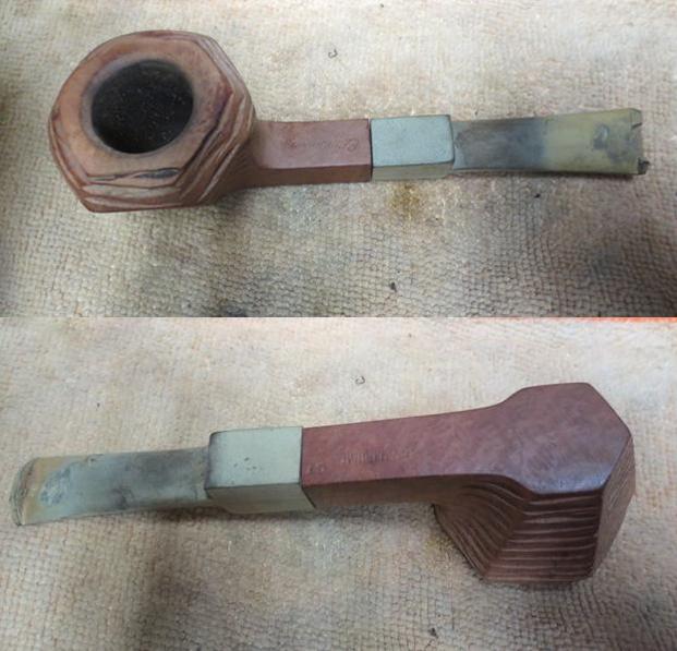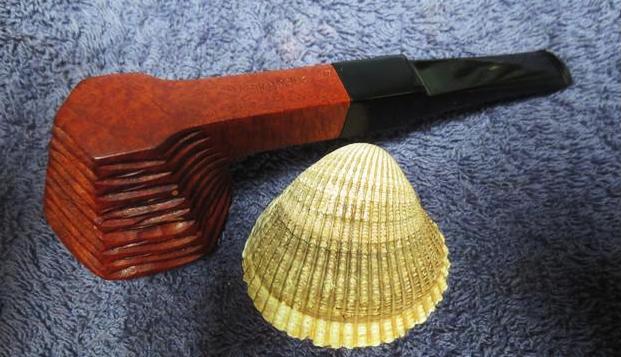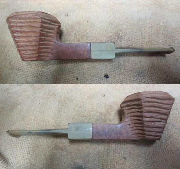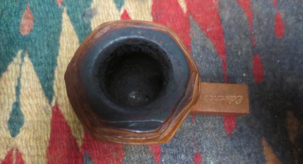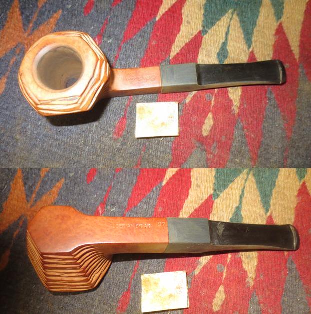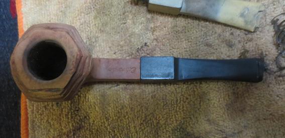 I got an email a while back from a friend who wanted me to work over an old Edwards that he had picked up. He had bought one from me in the past and had now found another one. It was a Hexagonal Dublin that had carved grooves on the sides of the bowl from the rim down to the base. The shank is square sided and is smooth. It is stamped Edwards on the top side of the shank. On the underside of the shank it is stamped Algerian Briar followed by the shape number 97. He had found it in a local antique shop I think. It had a thick cake in the bowl and the lava flowed over the top of the rim and down to the second layer of the carving on the rim. The shank was dirty and also filled with tars. The stem was a heavily oxidized replacement stem with the entire underside of the button broken off. Because it was a replacement I decided to put another replacement stem on the shank. I pulled the stem off the shank and took photos of the bowl. The grooves in the carving were dirty and the natural finish was dirty and damaged. I forgot to put the stem back on the shank and take photos. I was intent on cleaning up the bowl.