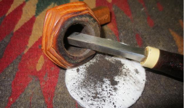 I scraped out the carbon cake in the bowl and off the rim top with a Savinelli Fitsall Pipe Knife. I carefully removed the lava from the rim of the bowl.