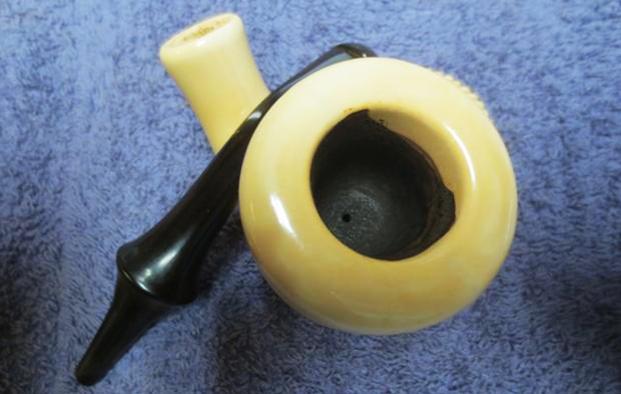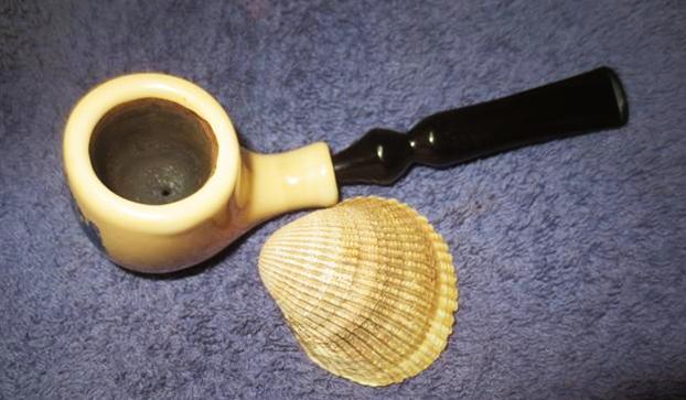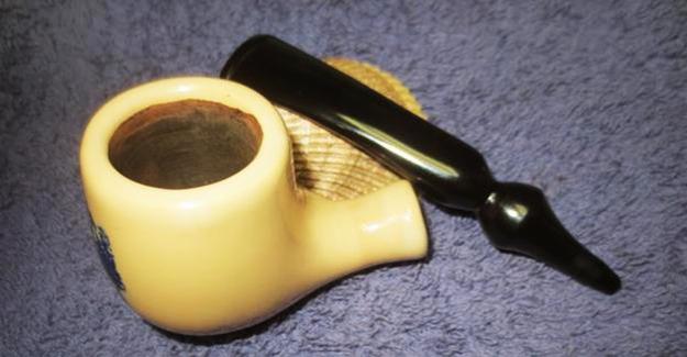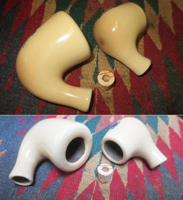 The rubber stopper on the smaller pipe was in good condition and still usable. The cork stopper was crumbling and I could hear pieces rattling in between the double walls of the ceramic pipe. I used a pen knife to clean out the pieces of cork.