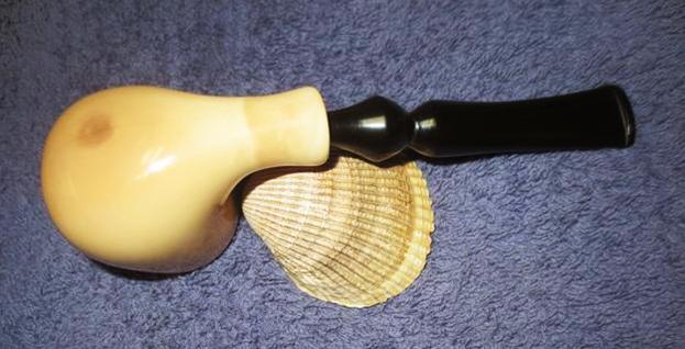 I cleaned both bowls under warm running water. I filled the space between the two walls of both pipe with hot water and shook it to loosen any residual tars or oils that had collected in those spots. I shook the water out and repeated the cleaning until the shanks and insides of both pipes were clean. I scrubbed the outside of the bowl and the inside of the bowl with hot water and a light detergent to remove the dirt on the glazed ceramic finish. While I was cleaning the bowls I remembered that I had inherited a bag of corks that were drilled or Le Peltier ceramic pipes. I took one out and was glad that it was the proper diameter for the calabash.