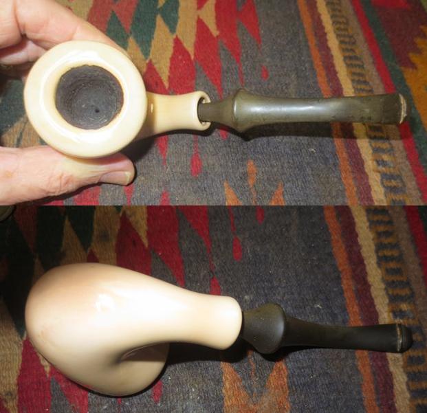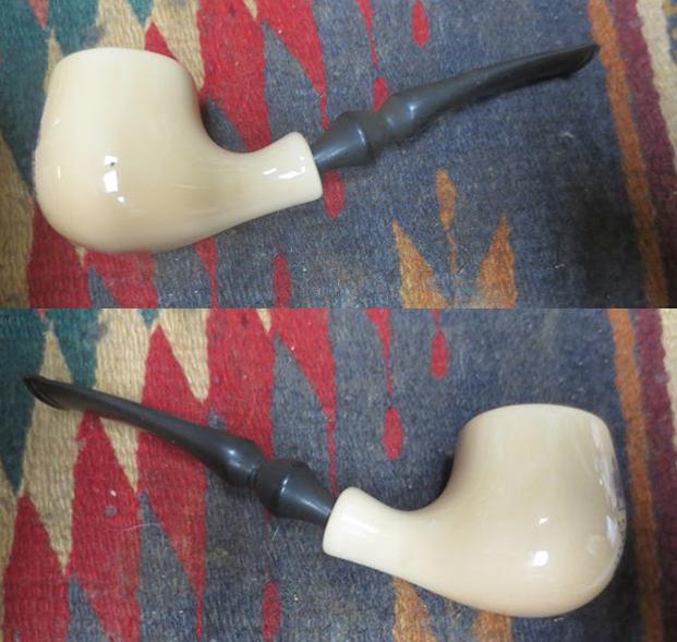 The stems were quite different in terms of condition. It appeared to me that the one on the smaller pipe was better quality vulcanite than the other one and it was barely oxidized. There was light tooth chatter on the stem. The stem on the calabash pipe was heavily oxidized and the tooth chatter and marks were heavier.