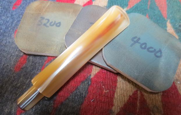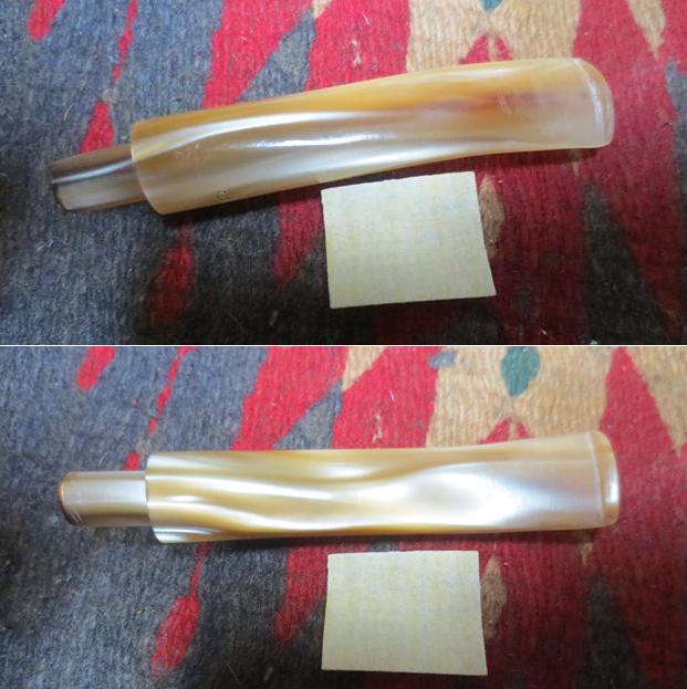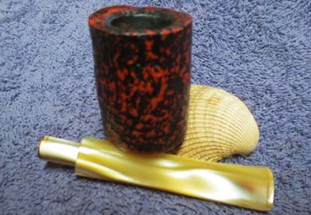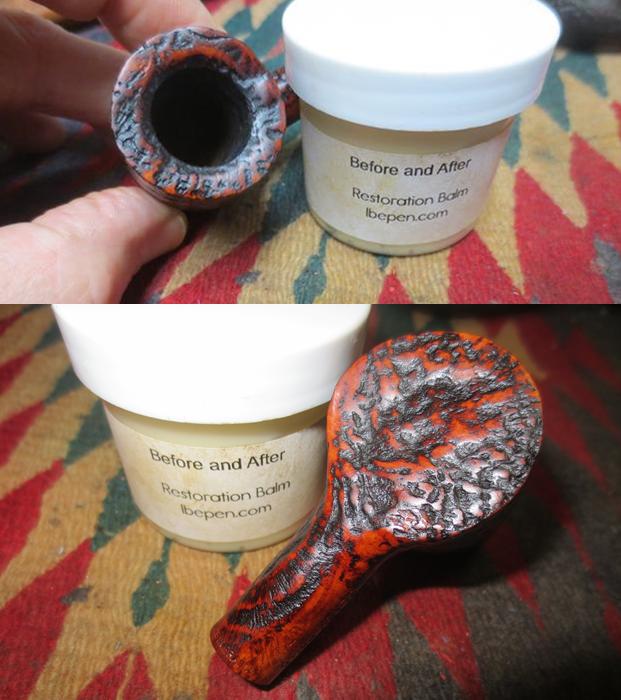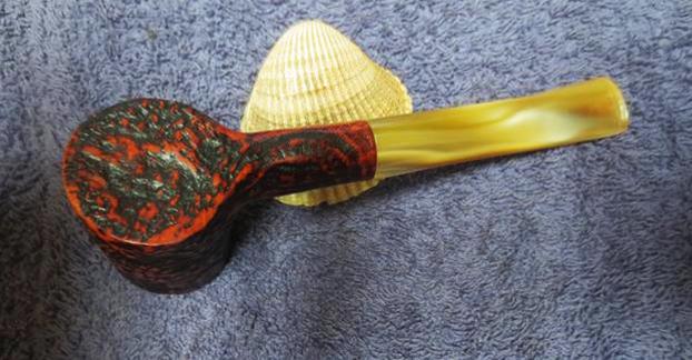 I then turned again to Churchill’s own website to see if I could find any more information. The site gave me some background information that adds colour to the history of a brand and makes it more personal for me. According to their website the shop is the last remaining specialist tobacconist in Norwich, originally standing at 32 St Andrews Street for over 23 years. http://www.churchillsofnorwich.com/index.php?_a=viewDoc&docId=1. The site also notifies the shop’s clients that Keith Garrard, who had a wealth of knowledge and was an avid pipe and cigar smoker himself, passed away on 23rd March 2012. His wife Coral continues to maintain the business in his honor.The bowl had a thick cake and an overflow of lava onto the top of the rim. The lava had filled in much of the rustication on the rim top. It looked as if the inner edge of the rim was undamaged but I would not know for sure until it was cleaned. The back of the rim had a much thicker coat of lava than the front side. The rustication patter on the bowl – top, bottom and sides is unique and the stain chosen makes it really stand out in contrast. The contrasting browns work really well with the golden swirls of the Lucite stem.The next two photos show the stamping on the left side of shank curling over on to the top of the shank. The third photo shows the stamped C on the left side of the stem.The golden swirled Lucite stem was clean other than having tooth chatter on both the top and underside near the button.Jeff out did himself on the clean up of this pipe. He reamed the bowl with a PipNet reamer and smoothed the walls of the bowl with a Savinelli Fitsall pipe knife. He scrubbed out the mortise and the airway in the shank and the stem with alcohol, cotton swabs and pipe cleaners. When he had finished, the bowl looks almost new on the inside (I actually don’t think it has ever been smoked to the bottom of the bowl as it is raw briar in the bottom third).  He scrubbed the exterior of the bowl, rim and shank with a tooth brush and Murphy’s Oil Soap to  remove the oils and tars on the bowl, rim and shank. He rinsed it under running water. He dried it off with a soft cloth. The lava mess on the rim and deep in the rustication was thoroughly removed without harming the finish underneath it. Once the grime was removed the finish actually looked to be in excellent condition I took photos of the pipe to show its condition before I started my work on it. I took a photo of the rim top to show the great condition it was in after the clean up.The stem looked really good other than the tooth chatter on both sides at the button. The chatter is hard to see in the photos but I was thankful that none of it was too deep.I once again used the Mark Hoover’s Before & After Restoration Balm on the briar. I rubbed it into the rustication on the rim, bowl and shank with my fingers. I wanted it to go deep in the rustication pattern to continue my test of the effectiveness of the product. As I have mentioned before Mark had said that the product can be used on briar or stems – whether vulcanite, acrylic or horn. He said it was designed to pull the dirt off of the briar as well as polish it. I figured this was a totally different type of finish that would once again put those claims to a test. He said that he had added some anti-oxidants to keep the briar from getting damaged from both UV rays and water. Once I had all the grooves and surfaces of the bowl covered I wiped it down with a clean cotton pad and then buffed it with a shoe brush. It seemed to work very well and I took the following photos to show the results. I set the bowl aside and turned my attention to the tooth chatter on the stem. I sanded out the chatter with 220 grit sandpaper until it was gone.It was time to polish out the scratches on the stem left behind by the 220 grit sandpaper with micromesh sanding pads. I wet sanded it with 1500-2400 grit pads and wiped it down after each pad with a damp cloth to wipe off the dust. I dry sanded it with 3200-12000 grit pads and again wiped it down with the damp cloth after each pad. The polishing of the stem removed all of the scratches and the tooth chatter. Each photo shows it progressively getting a shine. I put the stem back on the bowl and buffed it with Blue Diamond on the buffing wheel to polish the stem and lightly polish the briar. I gave the stem multiple coats of carnauba wax buffed it with a clean buffing pad to raise a shine. I gave the bowl multiple coats of Conservator’s Wax and rubbed it into the rusticated finish. I buffed it with a shoe brush and then with a clean buffing pad to raise the shine. I hand buffed the pipe with a microfiber cloth to deepen the shine. The variegated brown stained finish on the bowl and gold swirled Lucite stem combine to present a beautiful pipe. The dimensions of this pipe are Length: 5 1/2 inches, Height: 1 3/4 inches, Bowl diameter: 1 1/4 inches, Chamber diameter: 3/4 inches. The finished pipe is shown in the photos below. I will soon be putting it on the rebornpipes store if you are interested in adding to your collection. It is a beauty and will serve someone very well. Email me at slaug@uniserve.com or send me a message on Facebook. Thanks for looking.