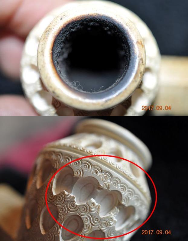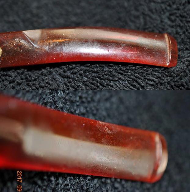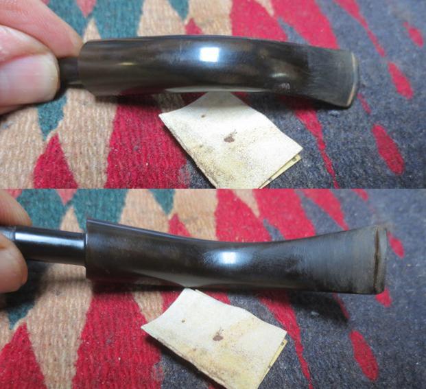 The stem was lightly oxidized as mentioned above. There was some residue on the underside of the stem near the button. It was the rubberized glue from a price tag. When the tag was peeled from the stem it left behind the residue. I wonder if it was not from the price tag that was put on at Rich’s Cigar Shop in Portland when the pipe was first sold. This would also lend to the theory that the pipe was NOS. I would be able to prove that it was unsmoked more adequately once the pipe arrived in Vancouver and I had a chance to look at it.