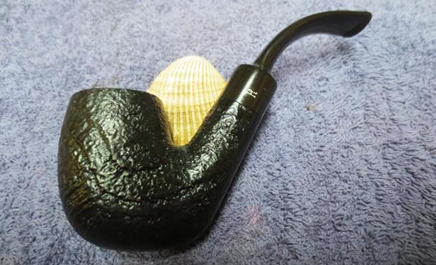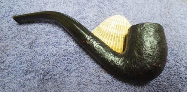 I put the stem back on the bowl and worked the pipe over on the buffing wheel using Blue Diamond to polish the bowl and shank. I used a gentle touch on the briar when I was buffing it so that the nooks and crannies of the sandblast finish would not be filled in and make more work for me. I buffed the stem with a harder touch to raise the gloss on the rubber. I gave the bowl multiple coats of Conservator’s Wax and gave the stem multiple coats of carnauba wax. I buffed the pipe with a clean buffing pad to raise the shine. I hand buffed it with a microfiber cloth to deepen the shine. The finished pipe is shown in the photos below. The oxidation and dust from sitting on a shelf somewhere was gone and the pipe looks like new again – very fitting for a unsmoked, NOS pipe. It is truly a beautiful pipe. The dimensions of the pipe are: Length: 5 inches, Height: 2 inches, Diameter of the bowl: 1 ¼ inch, Diameter of the chamber: 3/4 inches. I will be adding this one to the rebornpipes store shortly if you are interested in adding this NOS, unsmoked pipe to your collection. It will make a fine addition to the rack. If you are interested email me at slaug@uniserve.com or send me a message on Facebook. Thanks for looking.