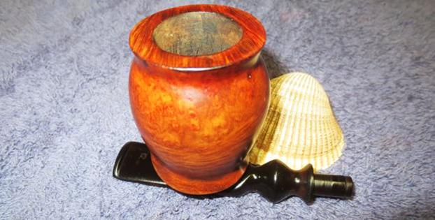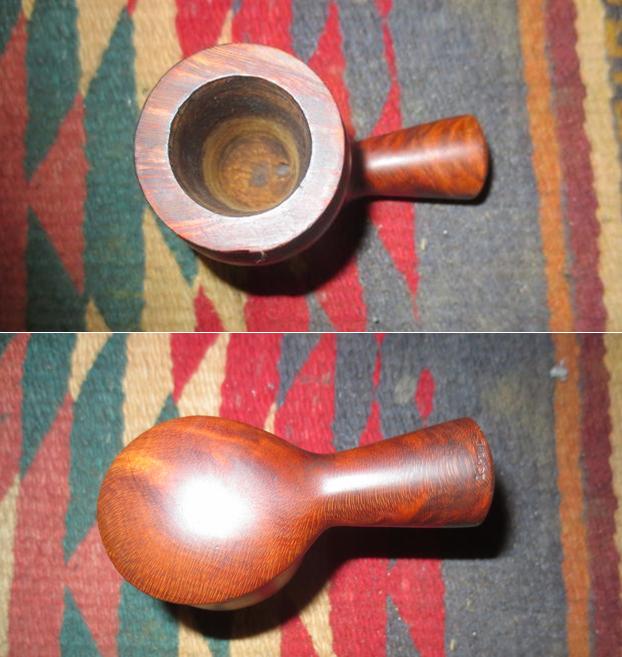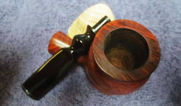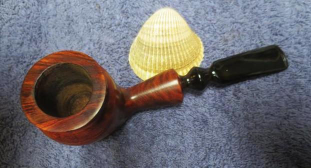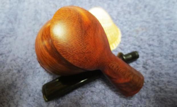I put the stem back on the bowl and worked the pipe over on the buffing wheel using Blue Diamond to polish the bowl and shank. I buffed the stem to raise the gloss on the vulcanite. I gave the bowl and stem multiple coats of carnauba wax. I buffed the entire pipe with a clean buffing pad to raise the shine. I hand buffed it with a microfiber cloth to deepen the shine. The finished pipe is shown in the photos below. The medium brown stain on the cauldron shaped bowl works well with the rich black of the vulcanite stem. This is a unique, beautiful and well-made pipe. The dimensions of the pipe are: Length: 6 inches, Height: 2 inches, Diameter of the bowl: 1 1/2 inches, Diameter of the chamber: 7/8 inches. I will be adding this one to the rebornpipes store shortly if you are interested in adding it to your collection. It will make a fine addition to the rack. If you are interested email me at slaug@uniserve.com or send me a message on Facebook. Thanks for looking.