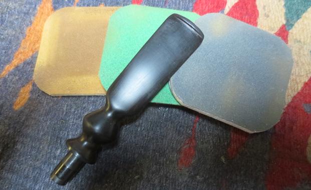 I polished out the sanding scratches and marks in the vulcanite with micromesh sanding pads – wet sanding it with 1500-2400 grit pads and dry sanding it with 3200-4000 grit pads. I wiped the stem down with Obsidian Oil after each sanding pad. I buffed the stem with Blue Diamond on the buffing wheel. I brought it back to the table and sanded it with the final three 6000-12000 grit pads. After the final pad I gave it a final coat of oil and set it aside to dry.