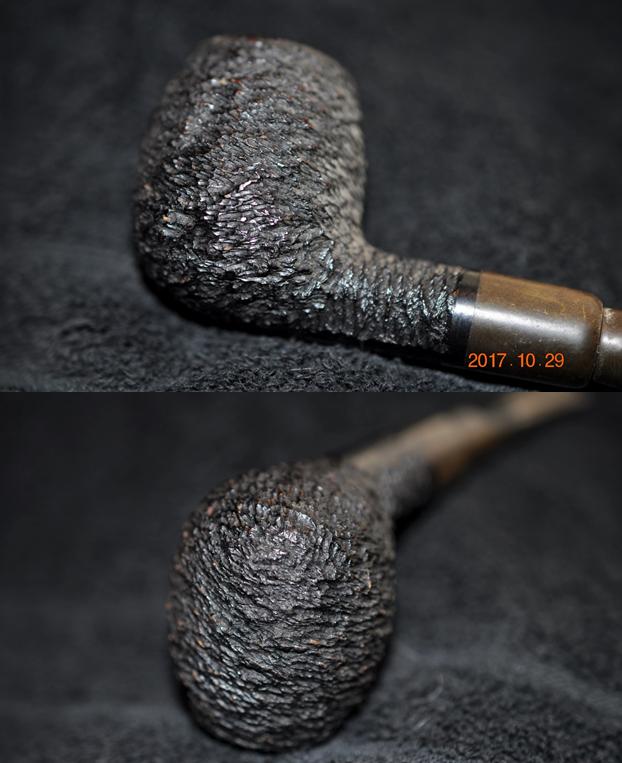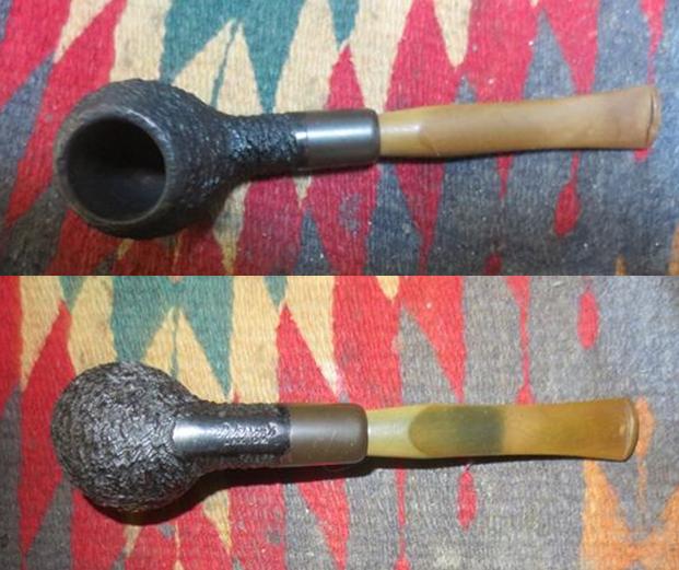 I just picked up a couple Peterson Laxiom pipes that are quite unusual. Both are stamped “Great Britain” on the stem. Both are black rusticated models which reminded me of a black Pioneer Block Meerschaum in my collection, in large part due to their similar stem and ferrule design. The Petes are relatively lighter in weight and are not labeled as meerschaum.