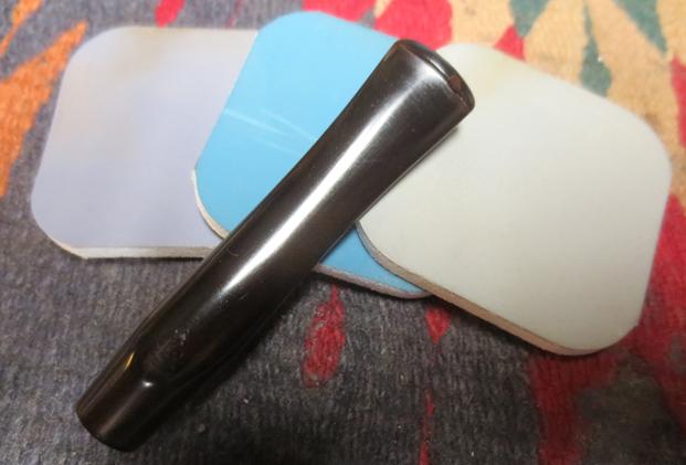I polished out the sanding scratches and marks in the vulcanite with micromesh sanding pads – wet sanding it with 1500-2400 grit pads and dry sanding it with 3200-4000 grit pads. I wiped the stem down with Obsidian Oil after each sanding pad. I buffed the stem with Blue Diamond on the buffing wheel. I brought it back to the table and sanded it with the final three 6000-12000 grit pads. After the final pad I gave it a final coat of oil and set it aside to dry.