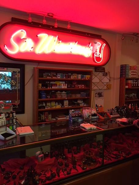 I proceeded down the hallway and turned toward my right. There was a small display case there that held a large selection of zippo lighters with and without pipe inserts. To the left of that was a display counter that had bulk pipe cleaners in fluffy, regular and bristle formats. Inside the case were various pipe tampers, reamers and tools that gave a wide range of options for the pipe smoker. Behind the counter was another folding screen blocking off what used to be the smoking lounge. The shop keeper’s dog was lying down behind the screen and barked her greetings. To the left behind the counter on the wall was a shelf with a large selection of packaged cigarette tobaccos and rolling papers. The rosy hue to the pictures of the counter area was caused by a red, neon Sir Winston sign hanging on the wall behind the counter. The walls in the rear of the shop were a bright red and as you came into the front they were more of a cream colour. It is a cozy shop that makes you feel comfortable.