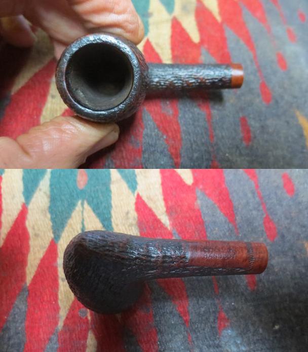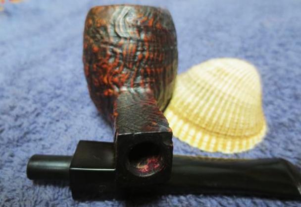 I put the stem back on the bowl and took the pipe to the buffing wheel to work it over. I gently buffed the rusticated bowl with Blue Diamond to polish the briar. I buffed the stem at the same time to raise the gloss on the vulcanite carefully working on the delicate stem. It would be very easy to break it at the pinched area. I gave the bowl multiple coats of Conservator’s Wax and the stem several coats carnauba wax. I buffed the entire pipe with a clean buffing pad to raise the shine. I hand buffed it with a microfiber cloth to deepen the shine. The finished pipe is shown in the photos below. I am hoping that the fellow I am restoring it for enjoys this beauty. For now he will have to enjoy it by looking at the photos but soon it will wing its way back to India. Thanks for looking.
