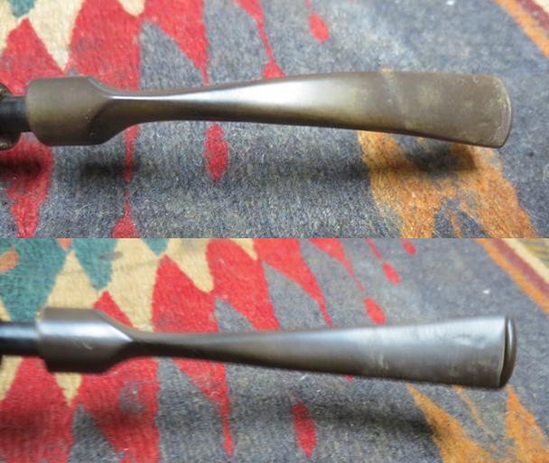 I took photos of the stem condition as well. You can see why it is called a pinched stem from the photos. It is oxidized and very delicate. The tooth marks on both sides are visible in the photos below. You can see the ones on the underside as they are worse. There is a number 10 stamped on the underside of the saddle portion of the stem. My guess is that it is a replacement stem number should one be required by a repairman back when the pipe was made.