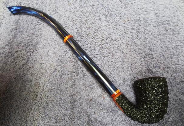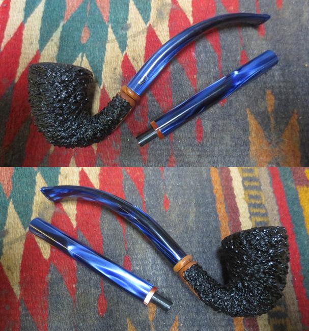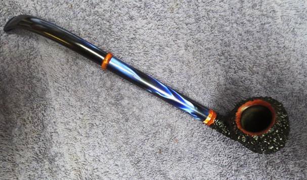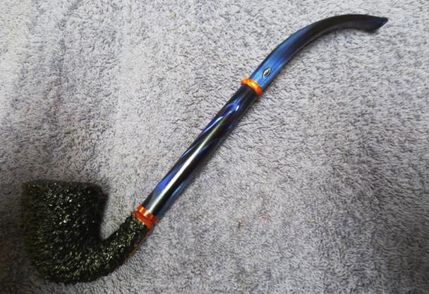 I buffed stem and extension with Blue Diamond to polish them. I gave the bowl multiple coats of Conservator’s Wax and the stem and extension multiple coats of carnauba wax. I buffed the entire pipe with a clean buffing pad to raise the shine. I hand buffed it with a microfiber cloth to deepen the shine. The finished pipe is shown in the photos below. The briar has a shine and a rich glow to it and the cobalt blue acrylic stem came out quite nice with a deep shine. The pipe really looks quite amazing. The dimensions on the pipe are; Length with extension: 10 inches, Length with just stem: 6 ½ inches, Bowl Height: 2 inches, Bowl Outer Diameter: 1 ½ inches, Chamber Diameter: ¾ inches. This will be a hard one to let go of but watch the rebornpipes store if you are interested in adding it to your collection. Send me an email to slaug@uniserve.com or a message on Facebook. Thanks for looking.