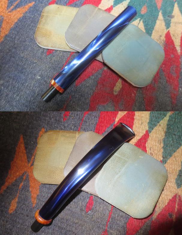 The stem and extension were in such good condition that I only worked them over with micromesh sanding pads. I polished the cobalt blue acrylic – wet sanding it with 1500-2400 grit pads and dry sanding it with 3200-12000 grit pads and wiped it down with a damp cotton pad after each one. When I finished with the 12000 grit pad I wiped it down a final time and hand buffed it with a cloth. I finished by polishing it with Before & After Pipe Stem Polish Fine and Extra Fine.