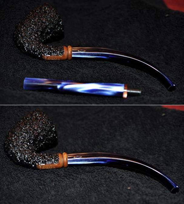 The next photos show the pipe taken apart and also in its shortened version. You can see the Delrin tenons on both the extension and the stem itself. The gentle curves of the stem and the shank is really nice even in the shorter version of the pipe.