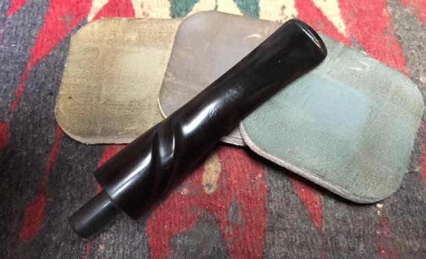 I polished the stem, carefully protecting the Autograph on the topside from further damage. I wet sanded it with 1500-2400 grit micromesh sanding pads and dry sanded it with 3200-12000 grit pads. I rubbed the stem down with Obsidian Oil after each pad. I polished it further with Before & After Pipe Polish, using both the Fine and Extra Fine polishes to further protect and polish out the scratches. When I finished with those I gave it a final rub down with the oil and set it aside to dry.