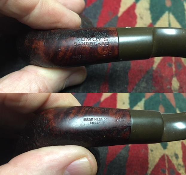 Jeff photographed the stamping on the right side the shank to show what it read and the condition of the stamping. You can see the underscored superscript 9 matches the one above. The formula is simple – the base number is either1950 or 1960 and you add the underscored superscript 9 to that number. It is either 1969 or 1959. The parallels to the photo above leads me to think it is probably a 1959 pipe. Any help on this would be greatly appreciated.