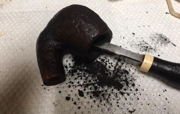 Jeff once again did his usual great job on cleaning this pipe, leaving it pristine and without damage to the finish. He reamed the bowl with a PipNet pipe reamer and cleaned up the remnants with the Savinelli Fitsall Pipe Knife. He scrubbed out the mortise and the airway in the shank and the stem with alcohol, cotton swabs and pipe cleaners. He scrubbed the exterior of the bowl, rim and shank with a tooth brush and Murphy’s Oil Soap to remove the grime of the smooth finish on the bowl and shank. He was able to remove the tars and oil on the rim but the darkening and damage to the surfaced would need to be addressed. He rinsed it under running water. He dried it off with a soft cloth. Once the dust and debris were removed the finish looked very good. He soaked the stem in Before & After Pipe Stem Deoxidizer to remove the light oxidation, rinsed it with warm water and dried it off. I took photos of the pipe to show its condition before I started my work on it.