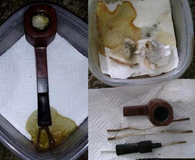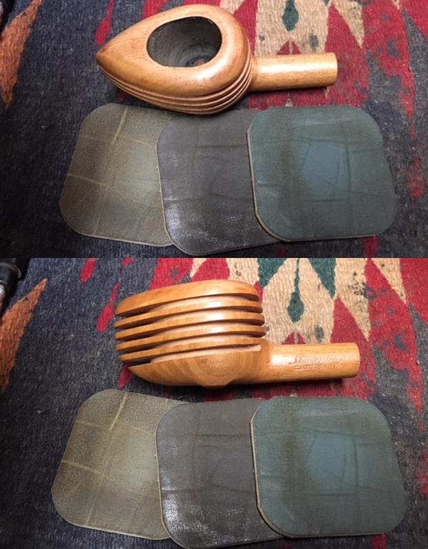 Barry and I corresponded back and forth and concluded our deal. I became the proud owner of his Dad’s pipes. The inventory of the pipes he would be sending included some real beauties – Comoy’s, Parkers, Dunhills and some no name brands. They were beautiful and I could not wait to see them. I had him send them to Jeff where he would clean them up before I received them. Jeff took some photos of the lot as he opened the box. Each pipe was individually wrapped with bubble wrap and taped to protect them. There were 25 bubble wrapped packages and a lot of pipe accessories included – pipe racks, reamers, scrapers and Comoy’s filters and washers. There were pipe pouches and a wooden cigar box that held all of the accessories and reamers. There was a boxed KleenReem pipe reamer that was virtually unused. Jeff unwrapped the pipes and took pictures of the estate showing both the pipes and the accessories. Barry had labeled each pipe with a sticky note. It was an amazing addition to my pipe and tool collection.