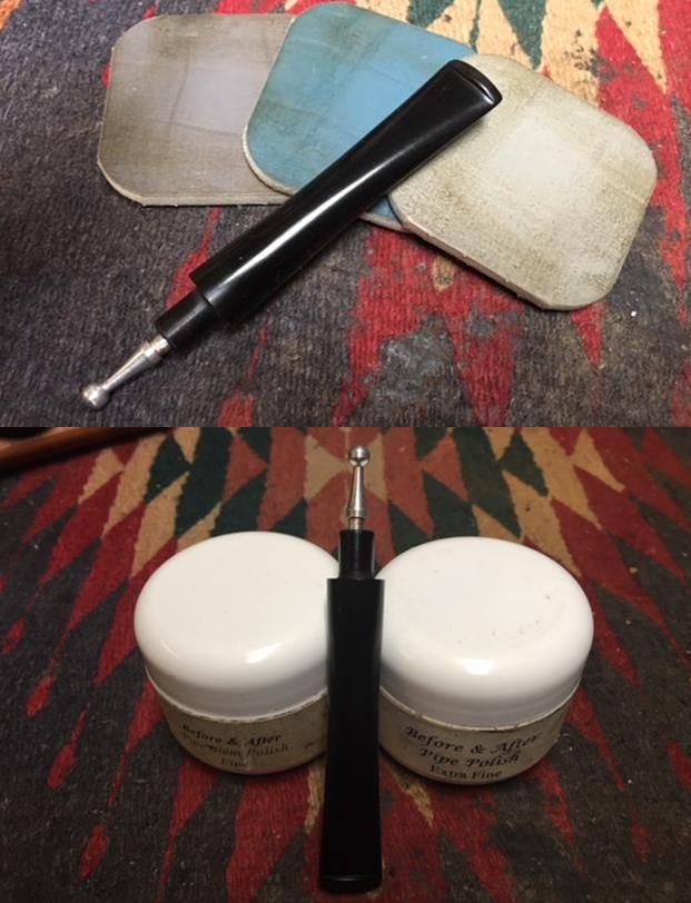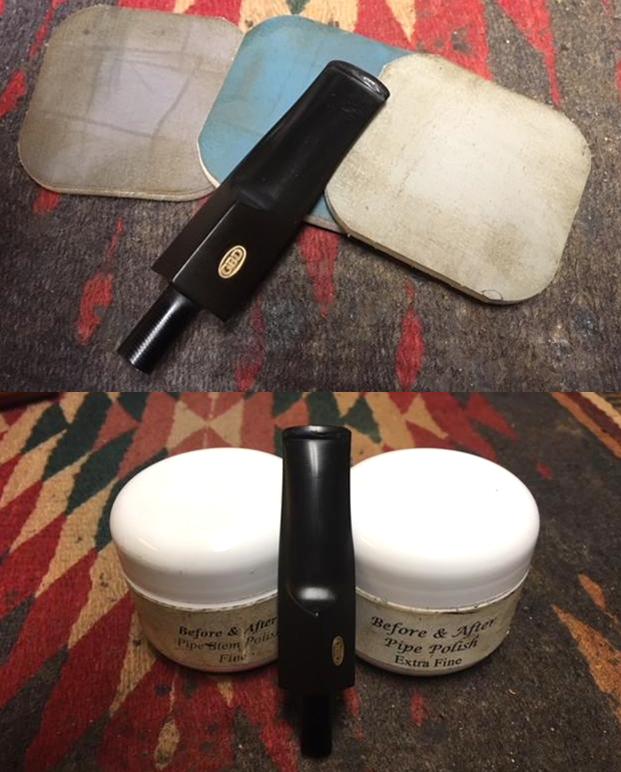 I polished stem with micromesh sanding pads – wet sanding with 1500-2400 grit pads and dry sanding with 3200-12000 grit pads. I wiped the stem down with Obsidian Oil after each pad. I polished it with Before & After Pipe Stem Polish, both Fine and Extra Fine. I gave it a final coat of Obsidian Oil and set it aside to dry.