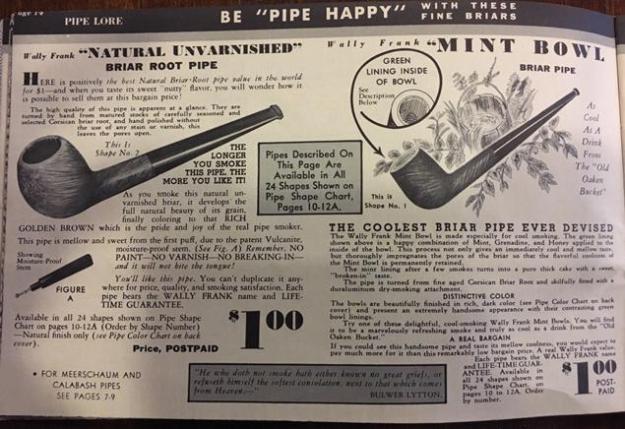 I misled you on the origin of his pipe conversion. It seems clear based on the 1939 pipe that he smoked a pipe in college, returning to them after the 1964 Surgeon General ‘s report on the danger of cigarettes. After that he only reverted to cigarettes at moments of great stress, a death, business setback or a fight with his wife.