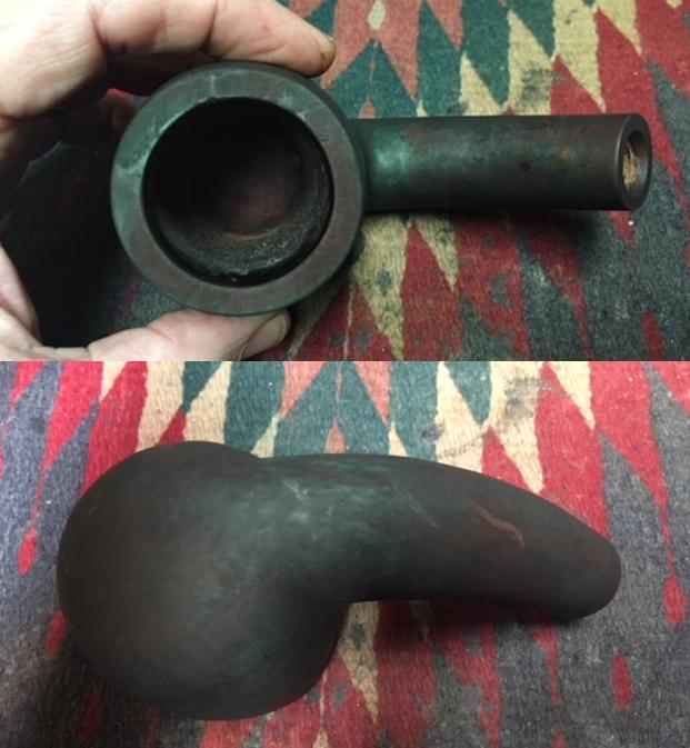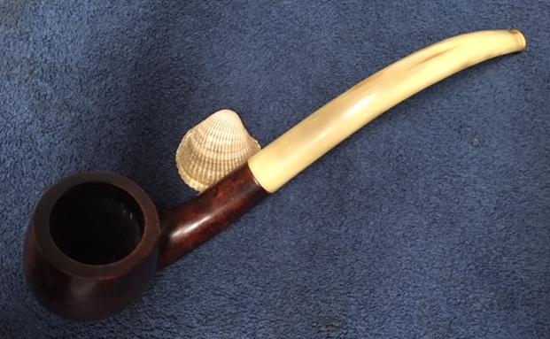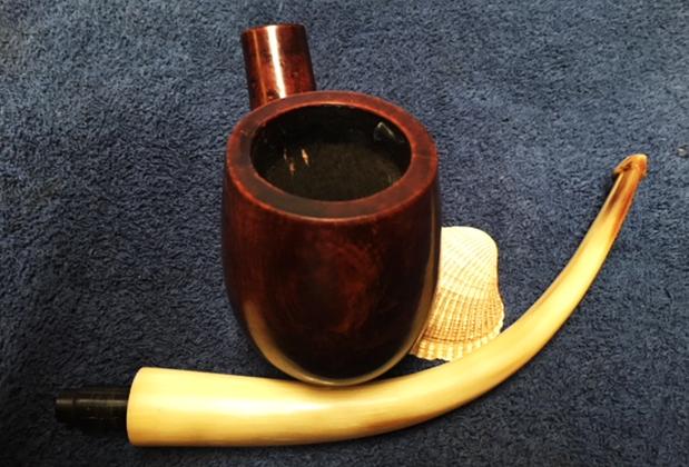 Several weeks ago I got a Facetime call from my brother Jeff. He was in Bozeman, Montana at an antique shop and had found a pipe that intrigued him. The seller wanted $49 for it and it was a large chunk of briar, well carved with a horn stem. He showed me photos on Facetime and it was indeed intriguing. It had gentle curves both from the bend of the shank to the curve of the horn stem. The horn stem appeared to be in good condition overall. The button and slot were damaged but it would not take too much work to clean up the slot and the nicks at stem/shank junction. We decided to pick it up and restore it. I have to tell you I had no idea how big the pipe was.