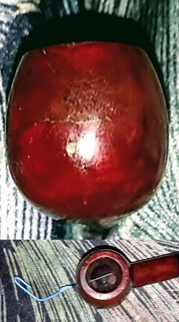 I mean, what else could I do but whistle, other than spend more than it was worth in return postage to the seller who went out of his way to hide the one definite fatal flaw, which was a pin-point hole in the bowl? Oh, but if only that were the sole point at issue with this small yet abominable pipe! Here are the sometimes poor but always honest pics I snapped with my old cell phone, showing every detail.