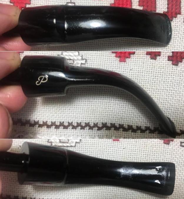To start the restoration of this hefty Peretti Billiard Half Bent Saddle, I add the stem to a bath of Before and After Deoxidizer. This was the first time I used the Before and After product and I was testing it to see how it worked. The Peretti Billiard joined several pipes and their stems in the queue. After soaking for several hours, I fished out the Billiard’s stem and allowed the Deoxidizer to drain. I then wiped off the oxidation with a cotton pad wetted with light paraffin oil, Bulgaria’s mineral oil. One of the attributes of Before and After Deoxidizer is that it is stamp friendly, which proves to be the case with the Peretti ‘P’.