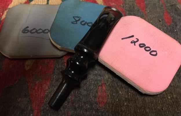 I set the bowl aside and turned my attention to the stem. I sanded out the tooth chatter out of both sides of the stem with 220 grit sandpaper. I worked over the surface with sandpaper to remove the tooth chatter and the oxidation.