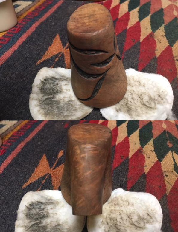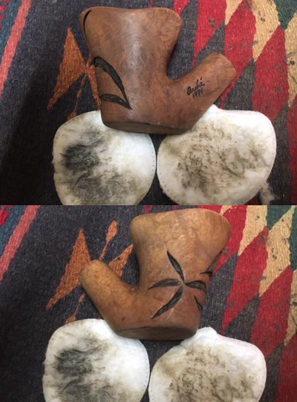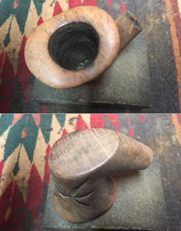 I wiped down the bowl and rim with acetone on a cotton pad to remove the remnants of stain in the bend of the shank/bowl junction and the grime ground into the finish. I was careful around the carved leaves or flower petals around the bowl and the stamping on the shank. Both seemed to have a darker stain in the grooves and I wanted to leave that undamaged.
