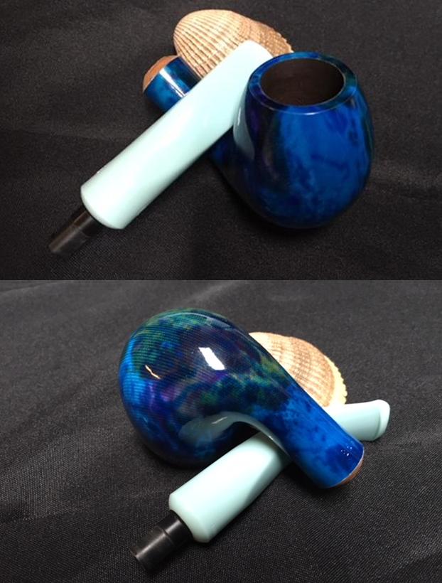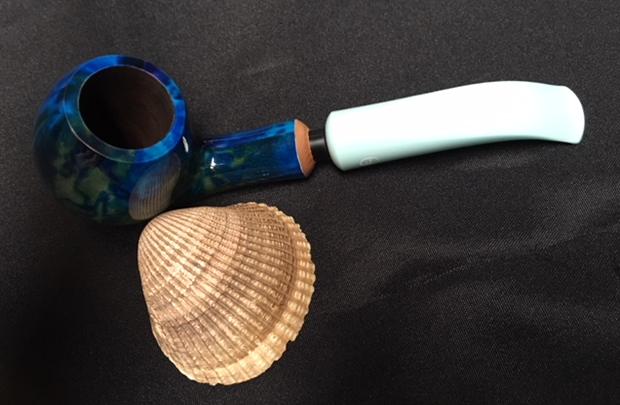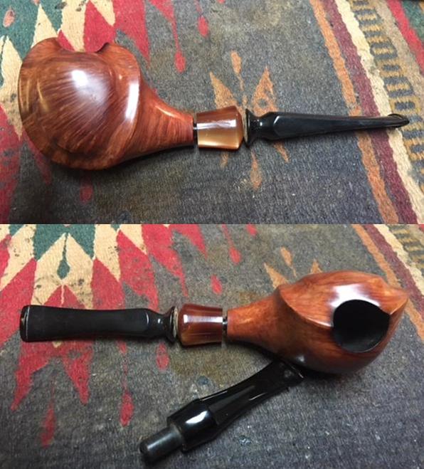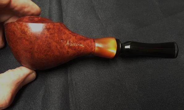 The blowfish “Vincent” was made by Tedd Weitzman in Atlanta around 2010. He started making pipes out of the shop of a local amateur maker and this was his first sellable one… “Chimera” would have been his marque, but he hadn’t made a stamp yet, but as far as I know he never made another.