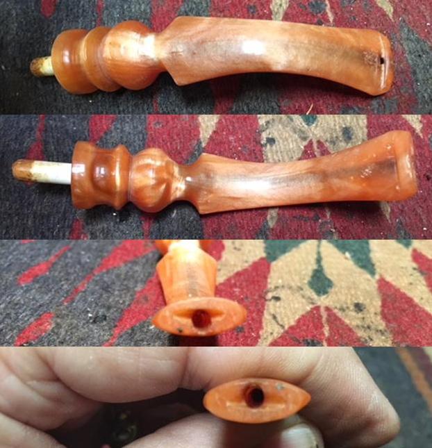 The next two photos show the stem surface. There are tooth marks and chatter on both sides near the button. On the second photo below there appears to be a tooth mark/hole deep in the surface of the acrylic. I am hoping that it is not all the way the surface of the stem.