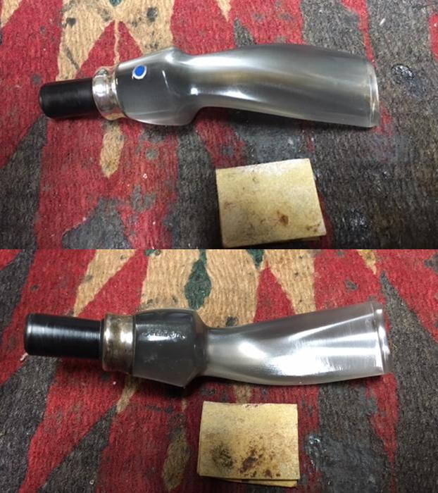 I started my clean up on this pipe by cleaning out the airway in the stem and shank, the mortise and shank interior with pipe cleaners, cotton swabs and alcohol. It did not take as much as I expected to remove all the tars and oils in the shank and mortise. The stem had some darkening in the airway and in the slot in the stem. I used pipe cleaners to clean out the debris that had collected in the edges of the slot and the darkening in the airway.
