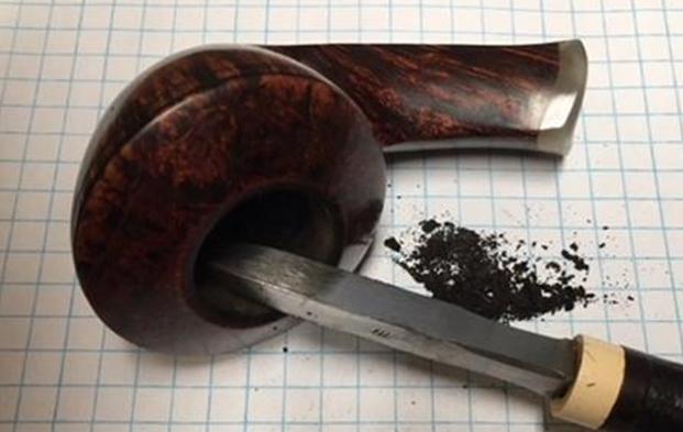I evened up the cake on the walls of the bowl with a Savinelli Fitsall Pipe Knife. I took the cake back to where there was a thin layer all around the bowl.
