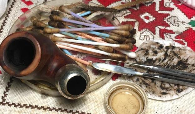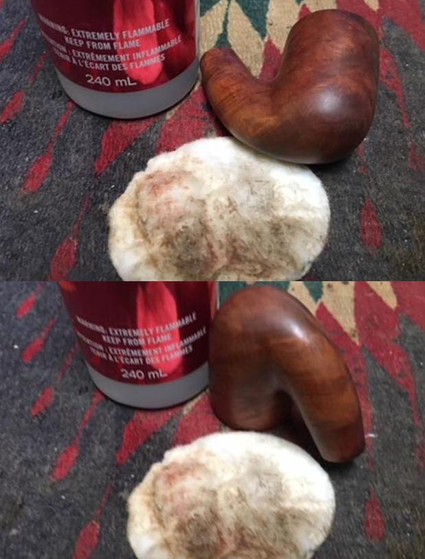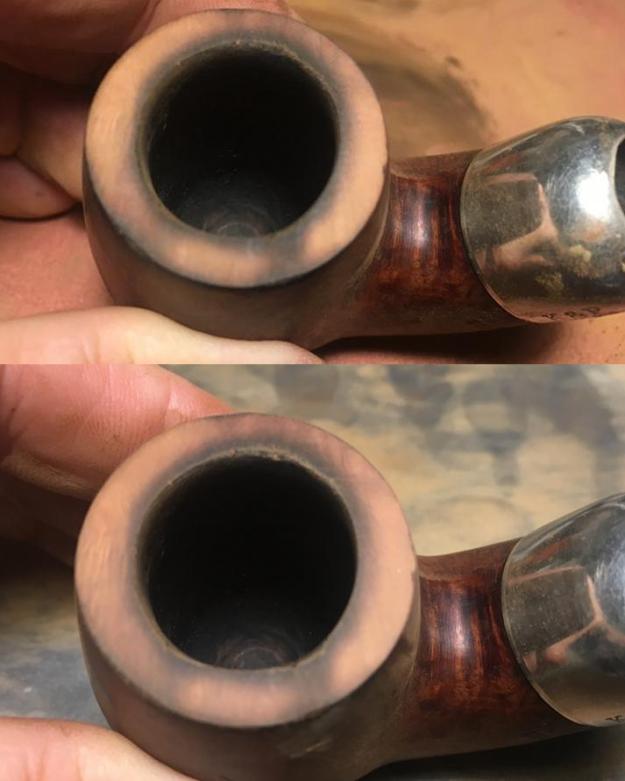I just realize that I became so involved in the technical aspects of this restoration that I forgot to clean the internals of the stummel! Back to the dirty work. I use pipe cleaners and cotton buds dipped in isopropyl 95% and go to work. I also use dental spatulas and probes to scrape the mortise walls. I also utilize a shank brush to scrub the airway and the mortise walls. I read how challenging Petersons are in the clean-up and this one is no exception. I expend a lot of cotton buds, alcohol and time and I seem to be making no dent in the gunk carnage. I finally halt this approach and decide to let it cook overnight in a kosher salt and alcohol bath. Using a cotton ball, I fashion a wick which I insert down the airway and into the sump area of the mortise. I fill the bowl with kosher salt, which, unlike iodized salt, does not leave an aftertaste. I then fill the bowl with alcohol and let it sit overnight. Time to turn out the lights.