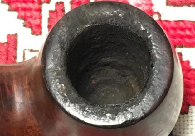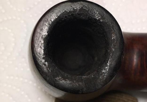 After a few rotations I take a picture of the rim. The picture below shows the degree of damage to the rim by revealing where the board is not making contact with briar – the dips in the rim.