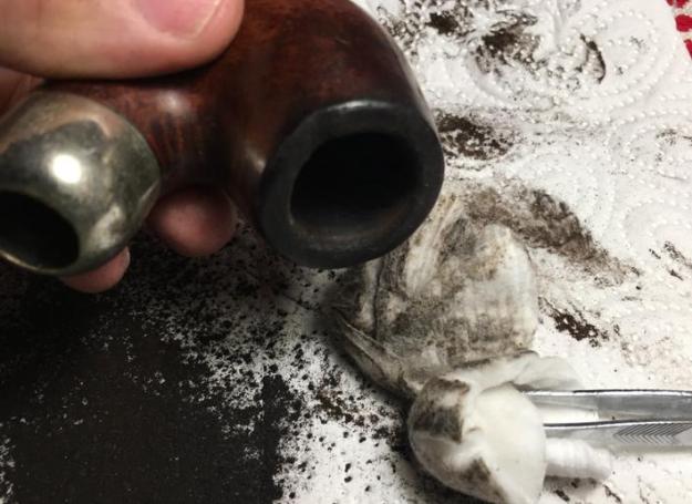Several hours later, home from work, and again, the salt is discolored, and the wick shows evidence of gunk extraction. Again, I clear the salt from the chamber and use additional cotton buds and pipe cleaners – I’m pleasantly surprised to find that the internals are indeed clean! I use only one cotton bud and pipe cleaner. I can almost guarantee, this Peterson is the cleanest it’s been since it came from the factory in Ireland!
