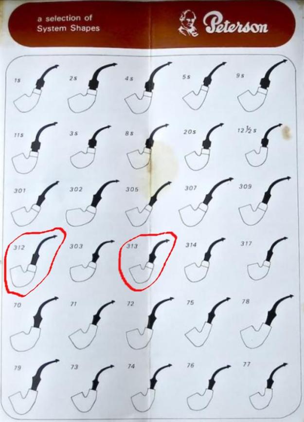 The System 313, I last restored, was quite a bit smaller than this larger System Standard 312. I found a very helpful Peterson’s System Standard shapes chart at the ‘Amazingmisterp’ blog site – link. It helpfully situated the 313 and 312 next to each other for an easy comparison – circled below. I enjoy looking at the nuanced shapes that Peterson has produced through the years. I can understand why they continue to be a very collectable pipe name and why it would be a great challenge to add to your collection the entire roster! As a ‘Made in the Republic of Ireland’ stamped Peterson, it is considered to be Republic Era which spans anywhere from 1949 until the present (from the Pipedia article: A Peterson Dating Guide; A Rule of Thumb, by Mike Leverette).