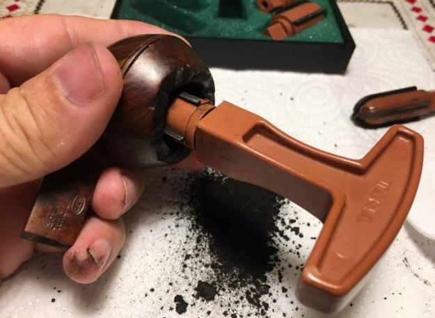 Since I like working on clean pipes and I know new stewards like smoking with clean pipes, I turn to the internals of the stummel. Using cotton buds and pipe cleaners with isopropyl 95%, I go to work. I’m thankful to discover that there is little resistance. Later, at the end of the day, I’ll clean the internals further by using a kosher salt and alcohol soak.