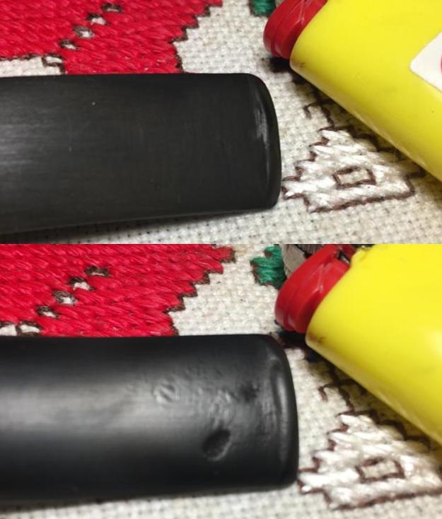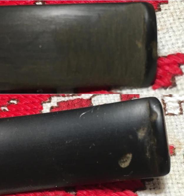 After cleaning the stem of the Deoxidizer, I can still detect oxidation in the vulcanite. I take another picture of the stem with the aperture open more to show what I’m seeing.