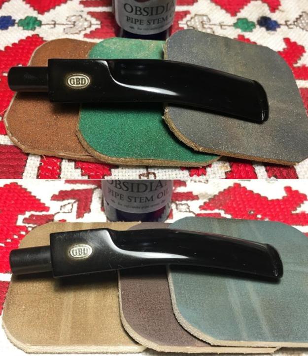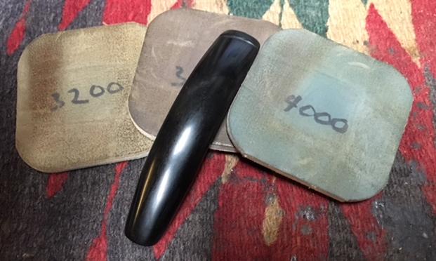 I now turn to micromesh pads by first wet sanding with pads 1500 to 2400, then dry sanding with pads 3200 to 4000 then 6000 to 12000. After each set of three I apply Obsidian Oil to revitalize the vulcanite. The stem looks good.