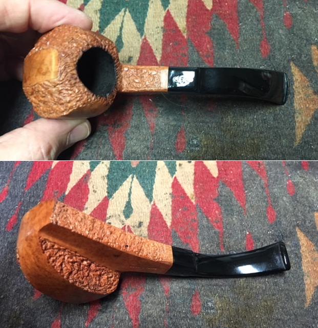 The bowl was heavily caked with oils, tars and grime overflowing onto the rim top and down the bowl along the vertical wire rustications. There appears to be some deep charring along the inner edge of the rim on the right hand side in 1’o’clock direction and on the left side in 7’o’clock direction. The extent of the damage to the rim can only be determined after reaming the bowl.