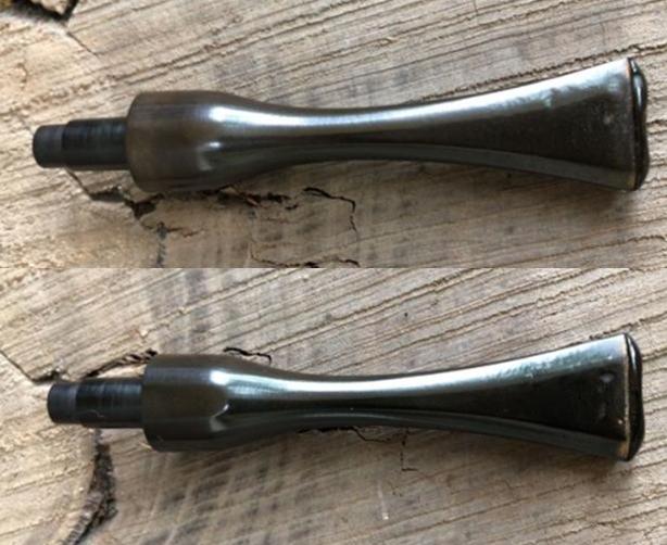 I took the stem out of the Before & After Deoxidizer Bath and rinsed it under runner warm water. I blew air through the stem and then ran water through it as well to rinse out the inside of the airway. The bath removed the oxidation and left the stem in clean condition. I took photos of it at this point to show how it looked. The Deoxidizer did its work well.