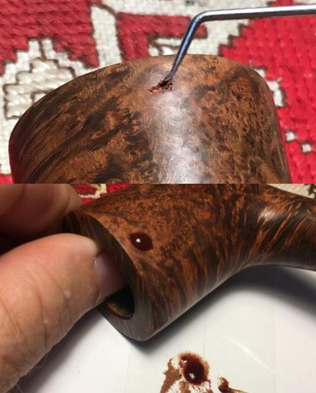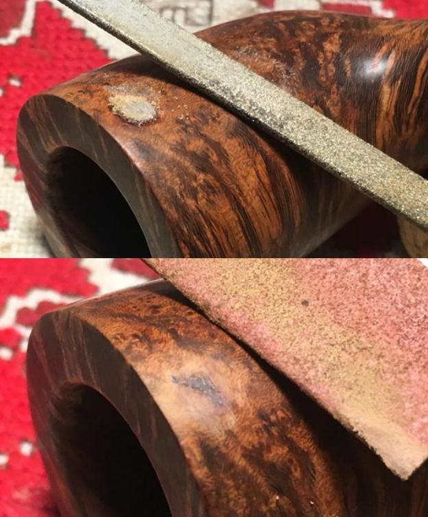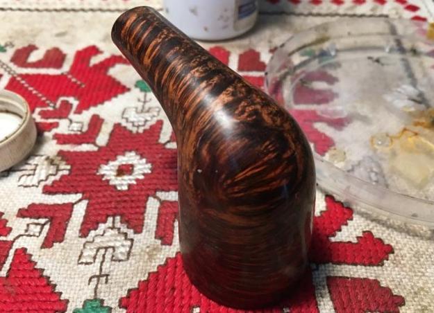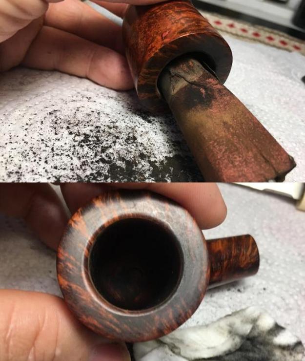 I set the bowl aside and turned my attention to the stem. I wiped the oily, sticky stuff off of the surface of the stem with alcohol on a cotton pad. The smell of the stuff was almost nutty, like peanuts or something similar. It needed to go so that I could work on the stem.