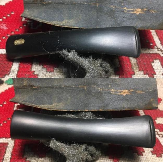 I started my cleanup of this pipe by working on the internals. I scraped out the remaining cake in the bowl with a Savinelli Fitsall Pipe Knife (I totally forgot to take photos of that part of the process). I cleaned out the airway in the shank and the stem with pipe cleaners and alcohol. I cleaned out the mortise in the shank with cotton swabs and alcohol. It was dirty but I was surprised it was as clean as it was.