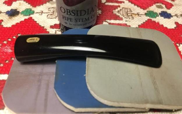 I sanded the light tooth chatter out of the surface of the stem and also worked over the oxidation that was prevalent in the grooves and spindles of the stem using 220 grit sandpaper. I forgot to take photos of that part of the process. I polished the stem using micromesh sanding pads – wet sanding with 1500-2400 grit pads and then buffing on the wheel with red Tripoli. I dry sanded the stem with 3200-12000 grit pads to further polish it. After each pad I wiped it down with Obsidian Oil to protect and enliven the stem. When I finished the last pad I gave it a final coat of oil and set it aside to dry.