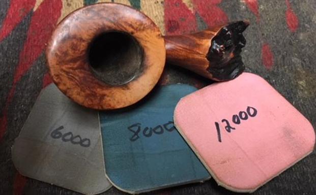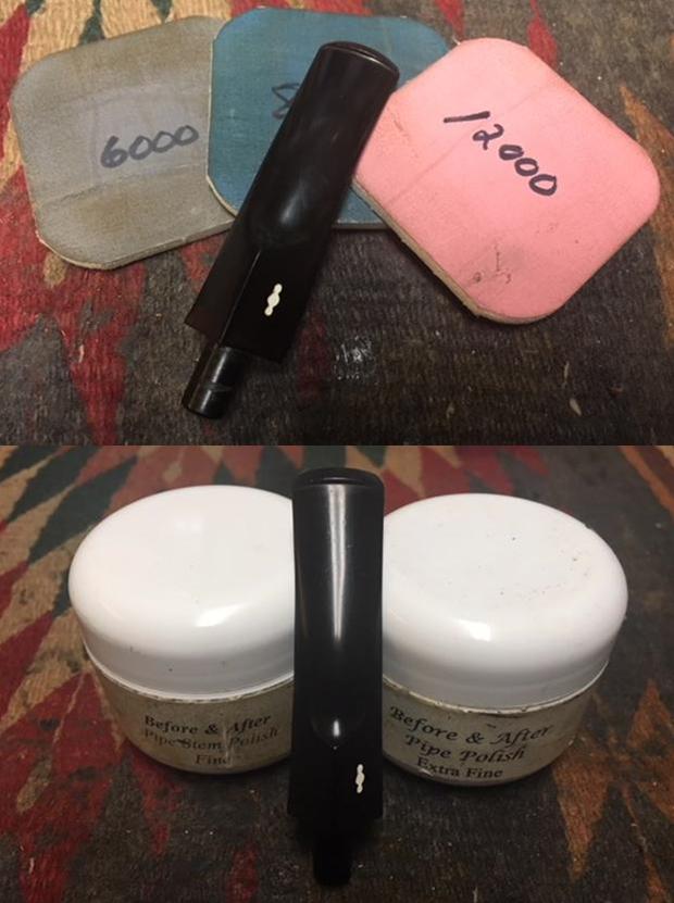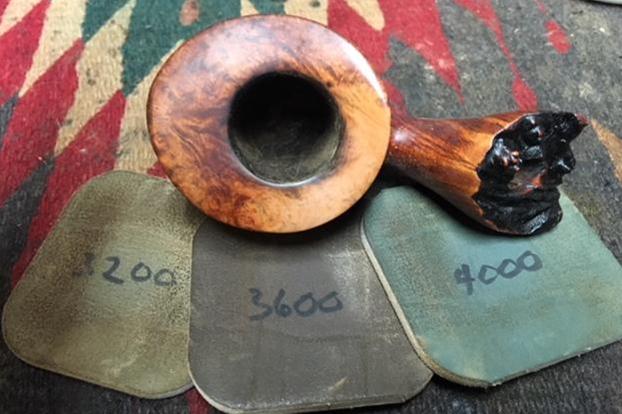 I polished the stem using micromesh sanding pads – wet sanding with 1500-2400 grit pads and then buffing on the wheel with red Tripoli. I dry sanded the stem with 3200-12000 grit pads to further polish it. After each pad I wiped it down with Obsidian Oil to protect and enliven the stem. I polished it further with Before & After Pipe Polish – both Fine and Extra Fine. When I finished with the polish I gave it a final coat of oil and set it aside to dry.