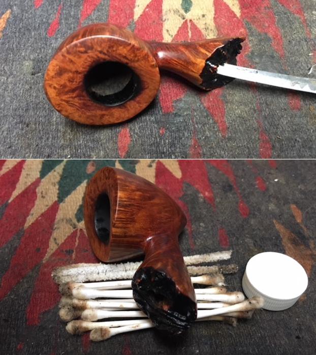 Ah well… I don’t know for sure where it came from or what previous pipeman carried the trust of this pipe before it came to me. It still needed to be cleaned up. I turned my attention to the restoration of the Bulldog.