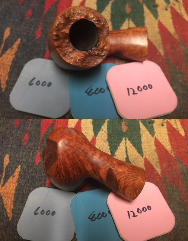 I polished the briar with micromesh sanding pads – wet sanding with 1500-2400 grit pads and dry sanding with 3200-12000 grit pads. I wiped the bowl down with a damp cloth after each sanding pad to remove the sanding dust. Once I had finished with the last pad I wiped it down with a light coat of olive oil to collect the dust and to give some depth to the finish.